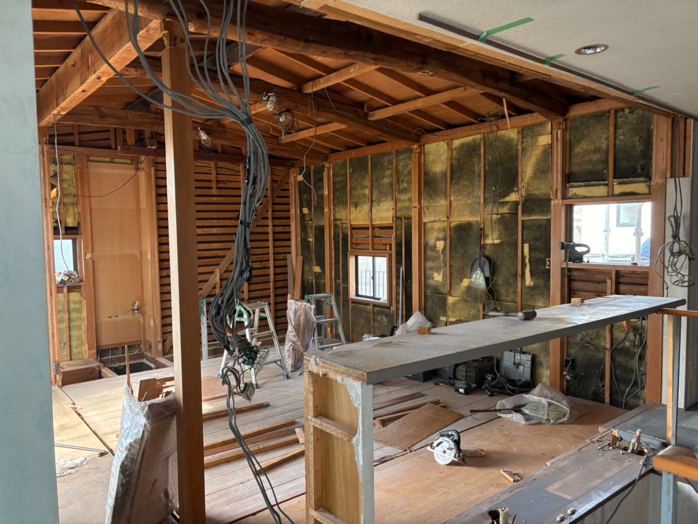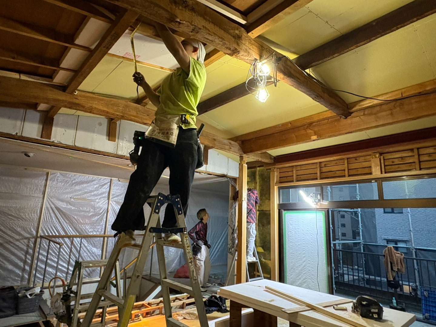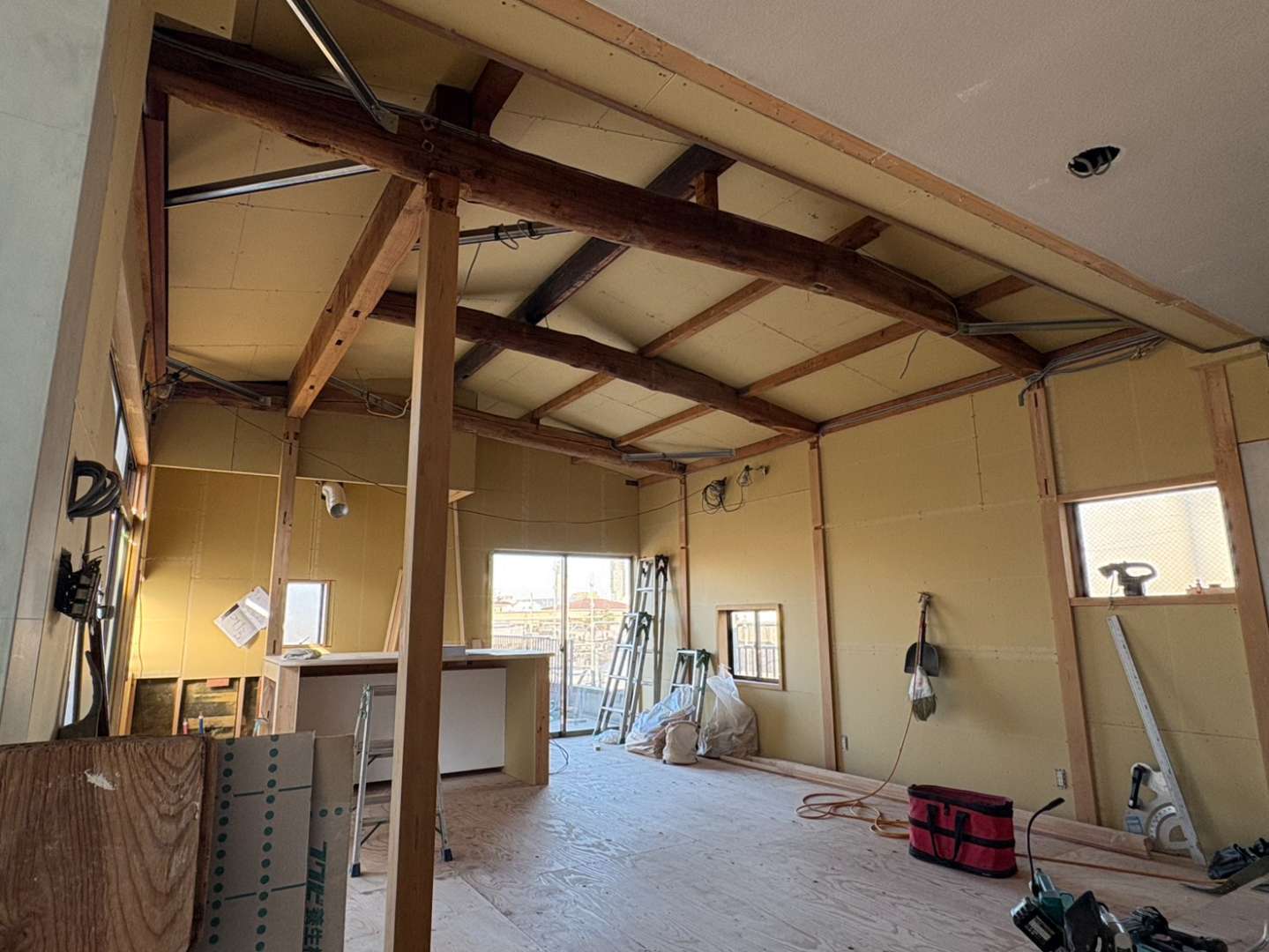 今回の施工の主役は、なんといっても力強い「梁(はり)」です。